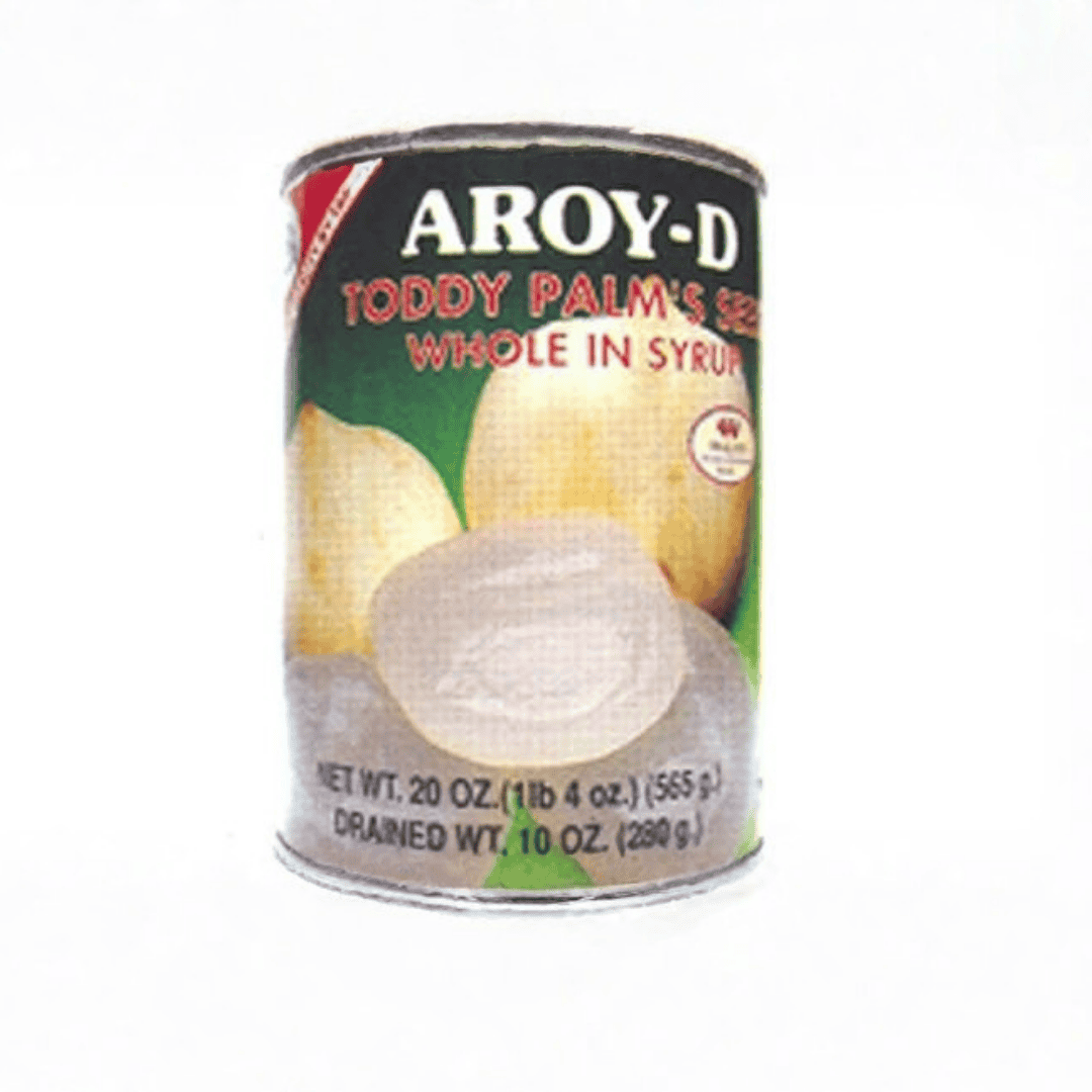 Aroy-D Toddy Palm Whole In Syrup (565g) is a canned tropical fruit product consisting of whole toddy palm fruits preserved in a sweet syrup, commonly used in desserts and beverages.
