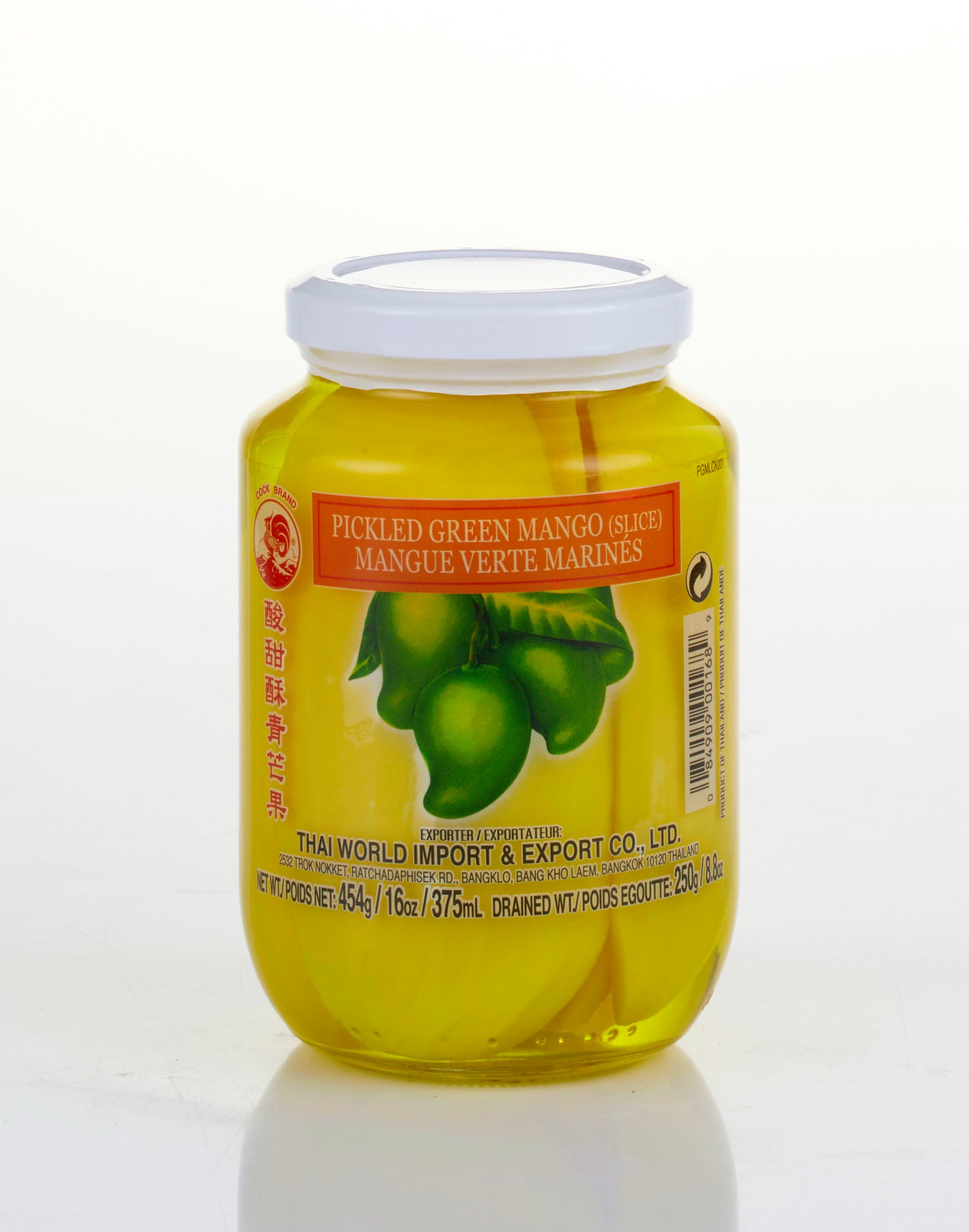 Tangy and crisp pickled green mango slices, perfect for Asian cooking. Ideal for curries, salads, stir‑fries, and traditional Southeast Asian dishes.
