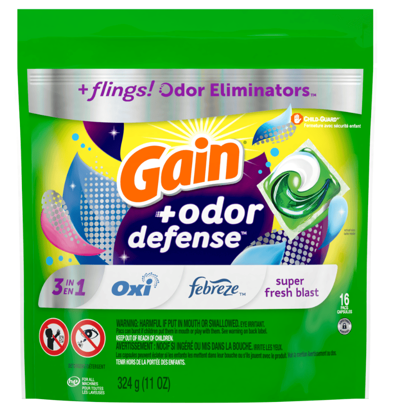 Wholesale Gain Pods Flings Super Fresh Blast Oxi With Febreze 3in1 16 Pacs (324g) – Case of 6