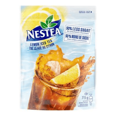 Nestea Lemon Iced Tea Mix (715g) with 50% less sugar. Made with real tea leaves and natural lemon flavor. Refreshing, low-sugar drink mix from Canada.