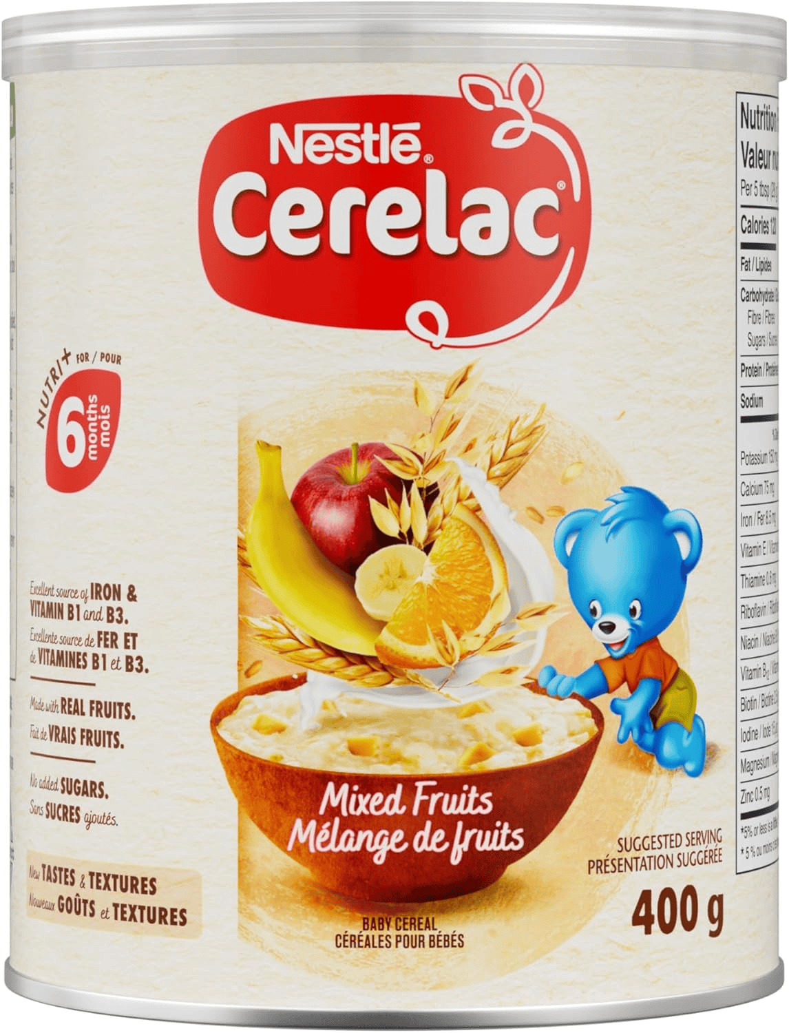 Nestlé Cerelac Mixed Fruit Baby Cereal is a nutritious first food for babies 6 months and up. Made with real fruit and no added sugar, it’s rich in iron, calcium, and essential vitamins to support healthy growth and cognitive development